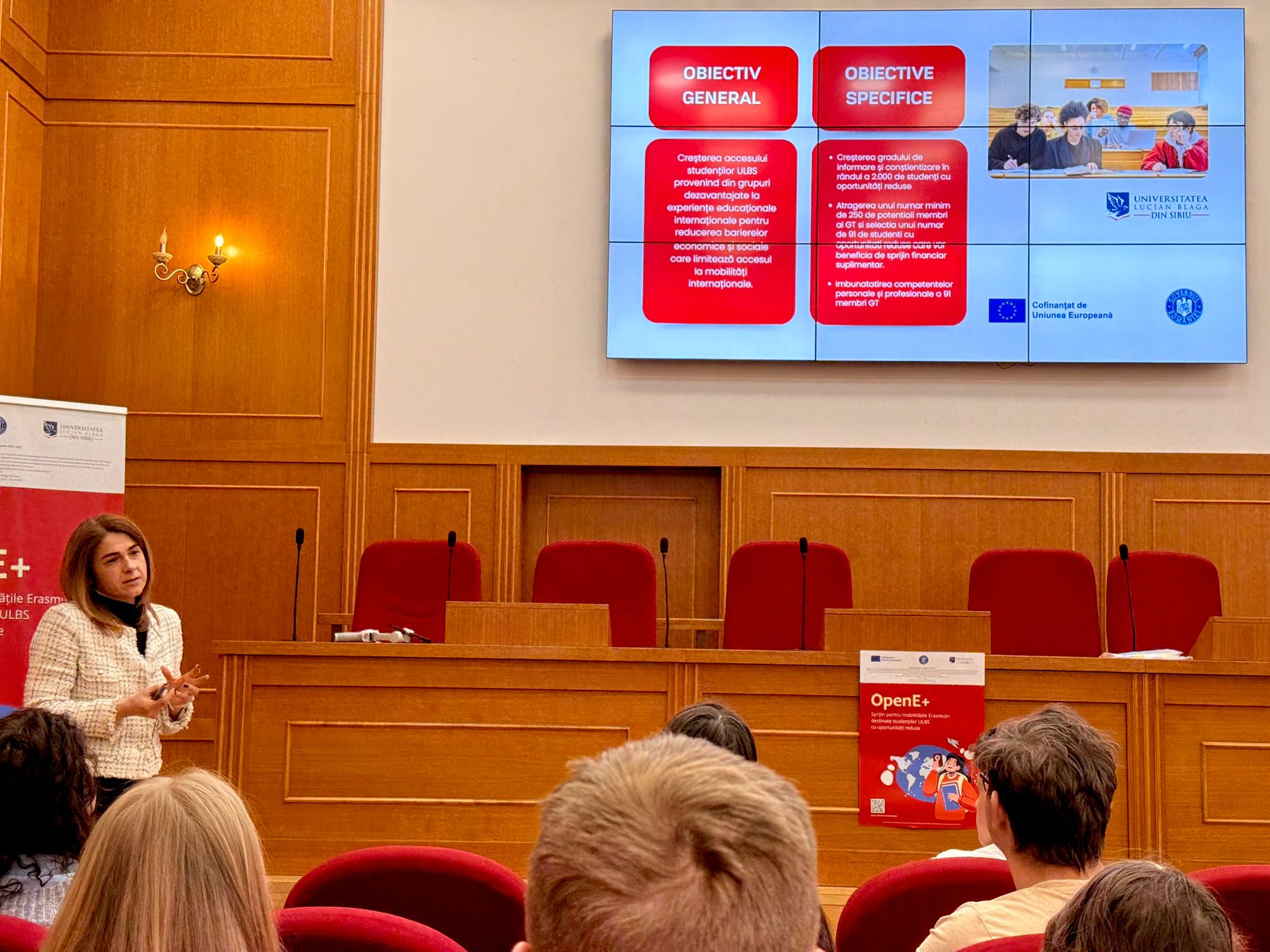 Evenimentul a marcat lansarea oficială a proiectului care are ca scop facilitarea accesului la mobilități internaționale pentru studenții ULBS care se confruntă cu bariere economice sau sociale. Prin intermediul OpenE+, aceștia vor beneficia de un pachet integrat de sprijin, care include consiliere dedicată, sprijin financiar suplimentar și activități pentru dezvoltarea competențelor lingvistice, de dezvoltare personală, a competențelor interculturale, precum și ale celor de storytelling, necesare unei experiențe Erasmus+ de succes.