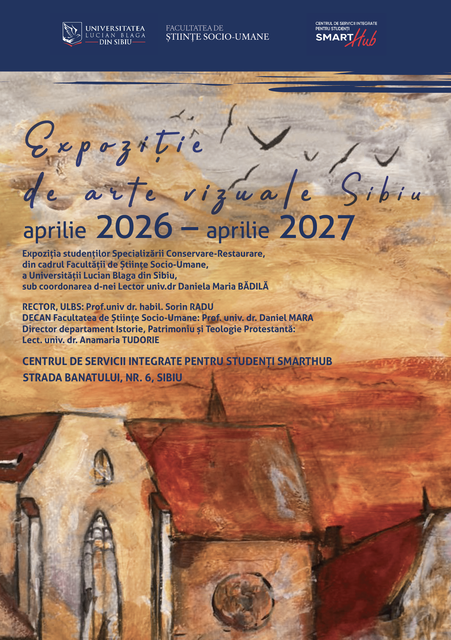 Expoziția de pictură deschisă la SmartHub, în perioada aprilie 2026-aprilie 2027, reunește lucrări ale studenților Specializării Conservare-Restaurare, din cadrul Departamentului de Istorie, Patrimoniu și Teologie Protestantă, a Facultății de Științe Socio-Umane, a Universității „Lucian Blaga” din Sibiu, sub coordonarea doamnei lector univ. dr. Daniela Maria Bădilă.  Printr-o diversitate de stiluri, tehnici și perspective artistice, fiecare lucrare explorează relațiile umane, conexiunile emoționale și momentele simple care dau sens vieții de zi cu zi.